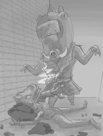 Jurassic Narc is a 2D animated noir-crime series that fuses the grit of detective storytelling with the raw edge of heavy metal and jazz culture. The story follows Rex Hogz, a grizzled detective disguised as a T-Rex, haunted by the brutal murder of his family. Driven by vengeance, Rex infiltrates the Rapàce Mob, a ruthless criminal empire led by the cunning Raptor King, Sal Carnevano. Alongside his weary friend Commissioner Olover Hopz, Rex descends into a labyrinth of betrayal, addiction, and blood-soaked justice.
